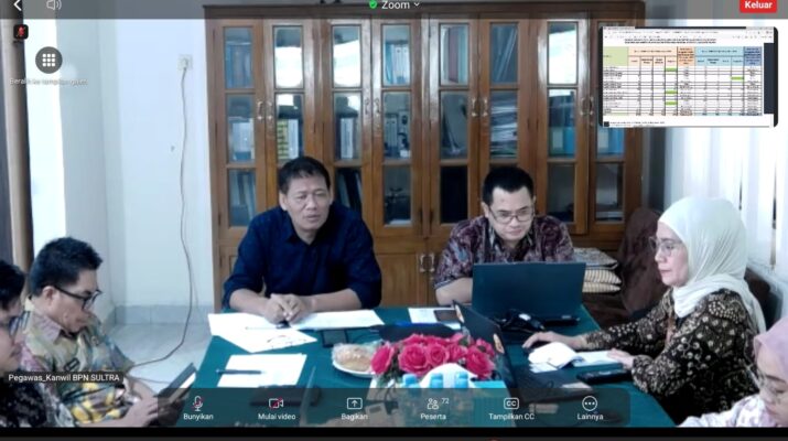 Konawe Utara — Kamis, 4 Desember 2025– Jajaran Kantor Pertanahan Kabupaten Konawe Utara mengikuti kegiatan Monitoring dan Evaluasi (Monev) Pendapatan Diterima Dimuka (PDDM) yang dilaksanakan secara virtual melalui aplikasi Zoom. Kegiatan ini dipimpin langsung oleh Kepala Bagian Tata Usaha Kanwil BPN Provinsi Sulawesi Tenggara, Ridwan, S.SiT.