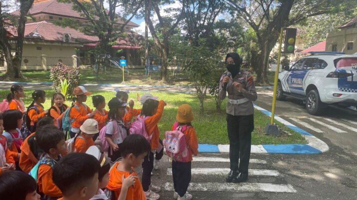 Kendari – Direktorat Lalu Lintas (Ditlantas) Polda Sulawesi Tenggara melalui Subdit Kamsel menggelar kegiatan Polisi Sahabat Anak (Polsanak) bersama siswa TK Bukit Zion Kendari,