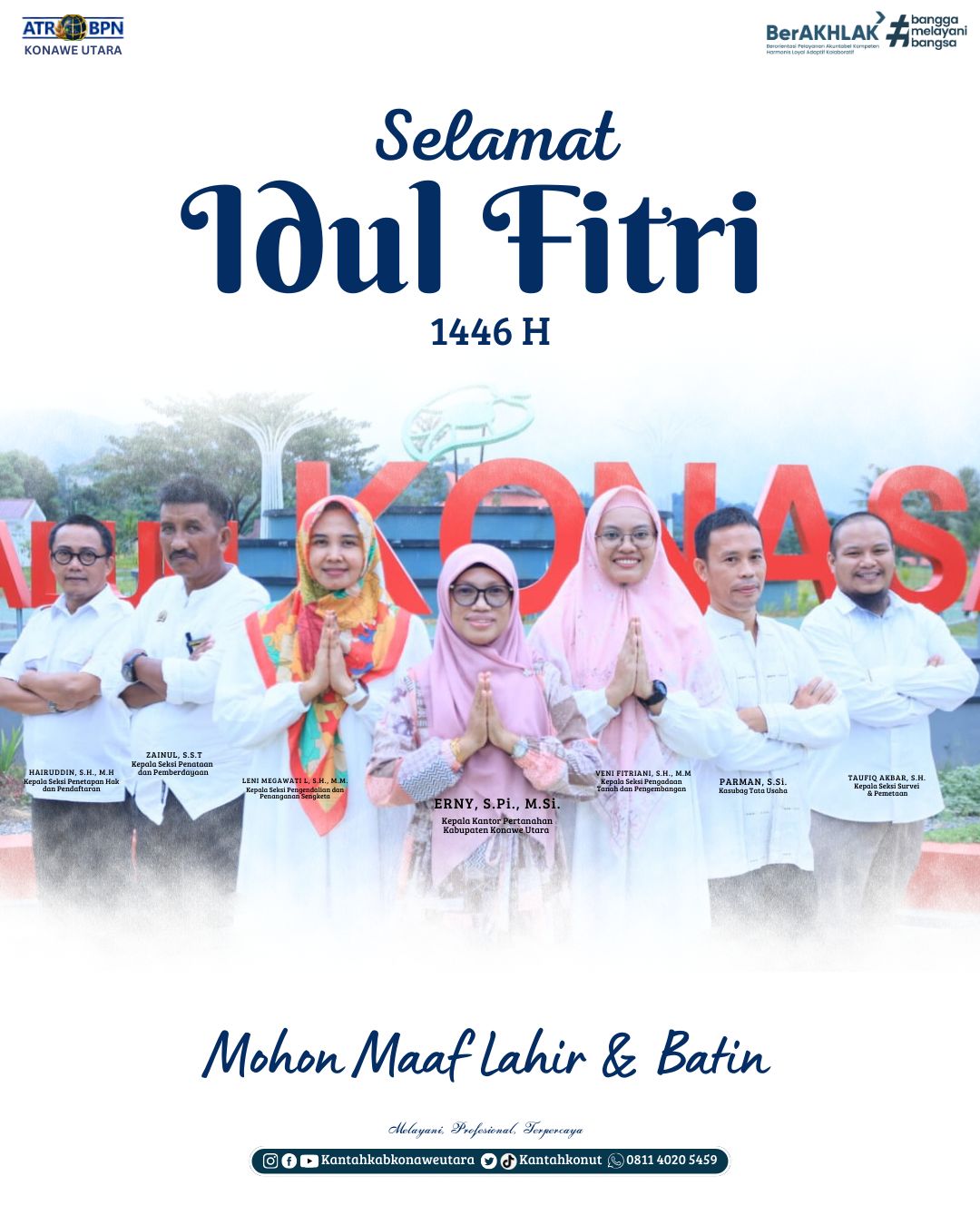 Segenap Pimpinan dan Staf Kantor Pertanahan Kabupaten Konawe Utara mengucapakan Selamat Idul fitri 1446 Hijriah
