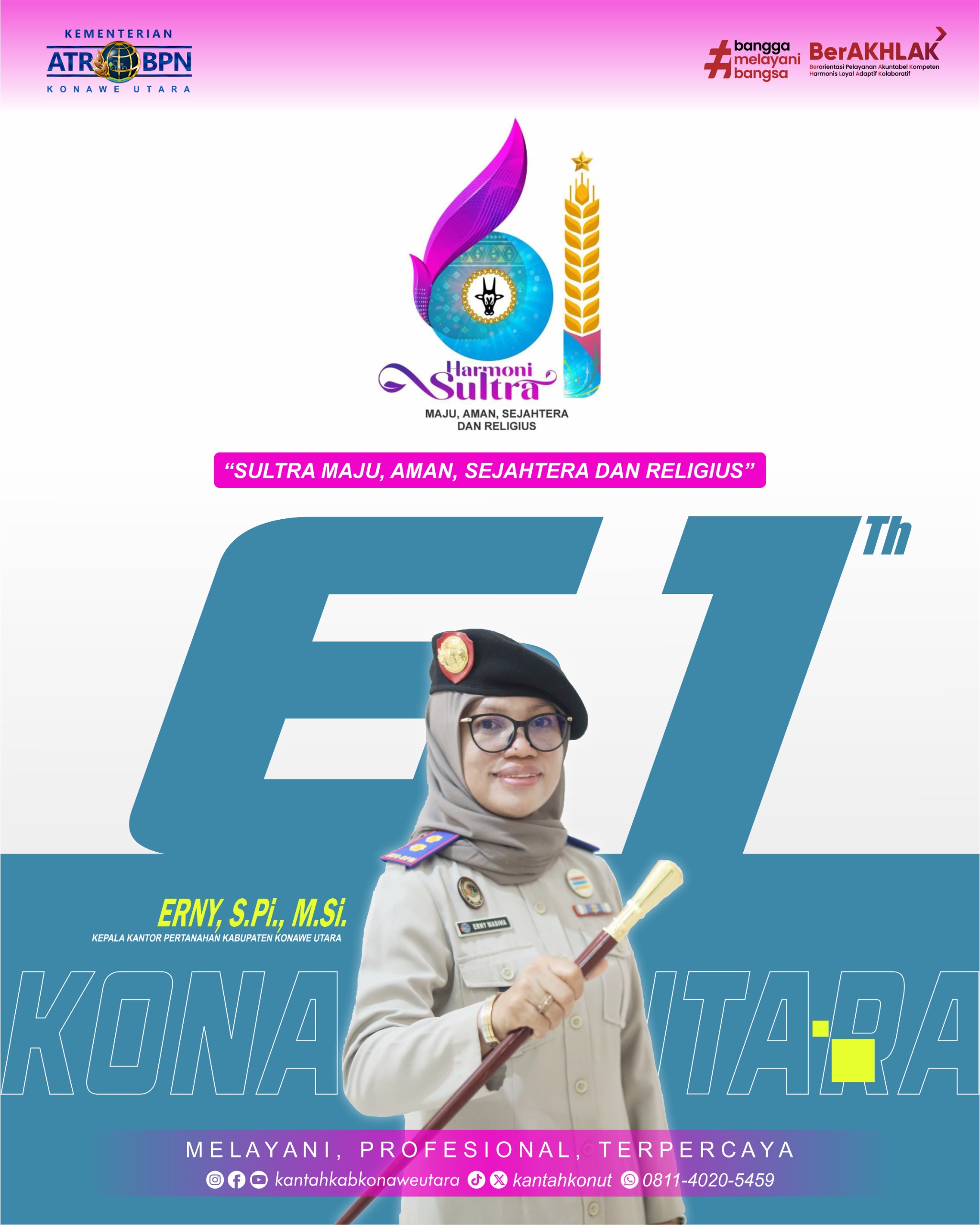 Kepala Kantor Pertanahan Konawe Utara Ucapkan Selamat HUT Sultra ke-61