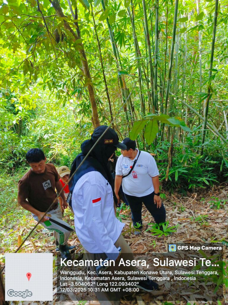 Kepala Seksi Penanganan dan Pengendalian Sengketa (PPS), Leni Megawati Lamato, S.H., M.M, Kantor Pertanahan Kabupaten Konawe Utara, menindaklanjuti pengaduan masyarakat, terkait objek Sengketa batas di Desa Tangguluri. Rabu, 12 Maret 2025.
