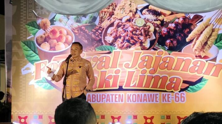 Bupati Konawe, Yusran Akbar, S.T., membuka Festival Jajanan Kaki Lima dalam rangka merayakan HUT Konawe ke-66 pada Rabu (8/4/2026). Sebanyak 24 pelaku UMKM dari STQ telah resmi menempati kawasan wisata kuliner tersebut. Acara ini dihadiri oleh pimpinan OPD, Wakapolres, Forkopimda, hingga jajaran perbankan.