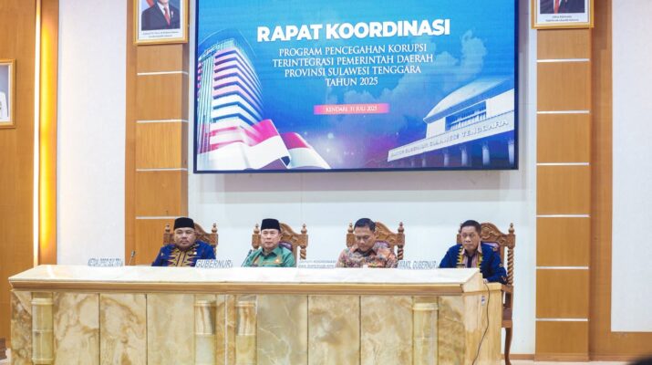 Gubernur Sulawesi Tenggara, Mayjen TNI (Purn) Andi Sumangerukka, membuka Rapat Koordinasi program pencegahan korupsi terintegrasi Pemerintah Daerah Provinsi Sulawesi Tenggara tahun 2025, yang digelar