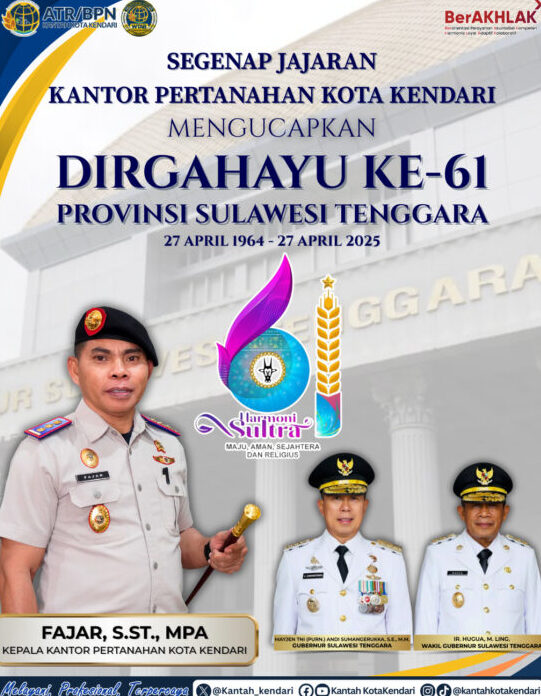Kepala Kantor Pertanahan Konawe Utara Ucapkan Selamat HUT Sultra ke-61