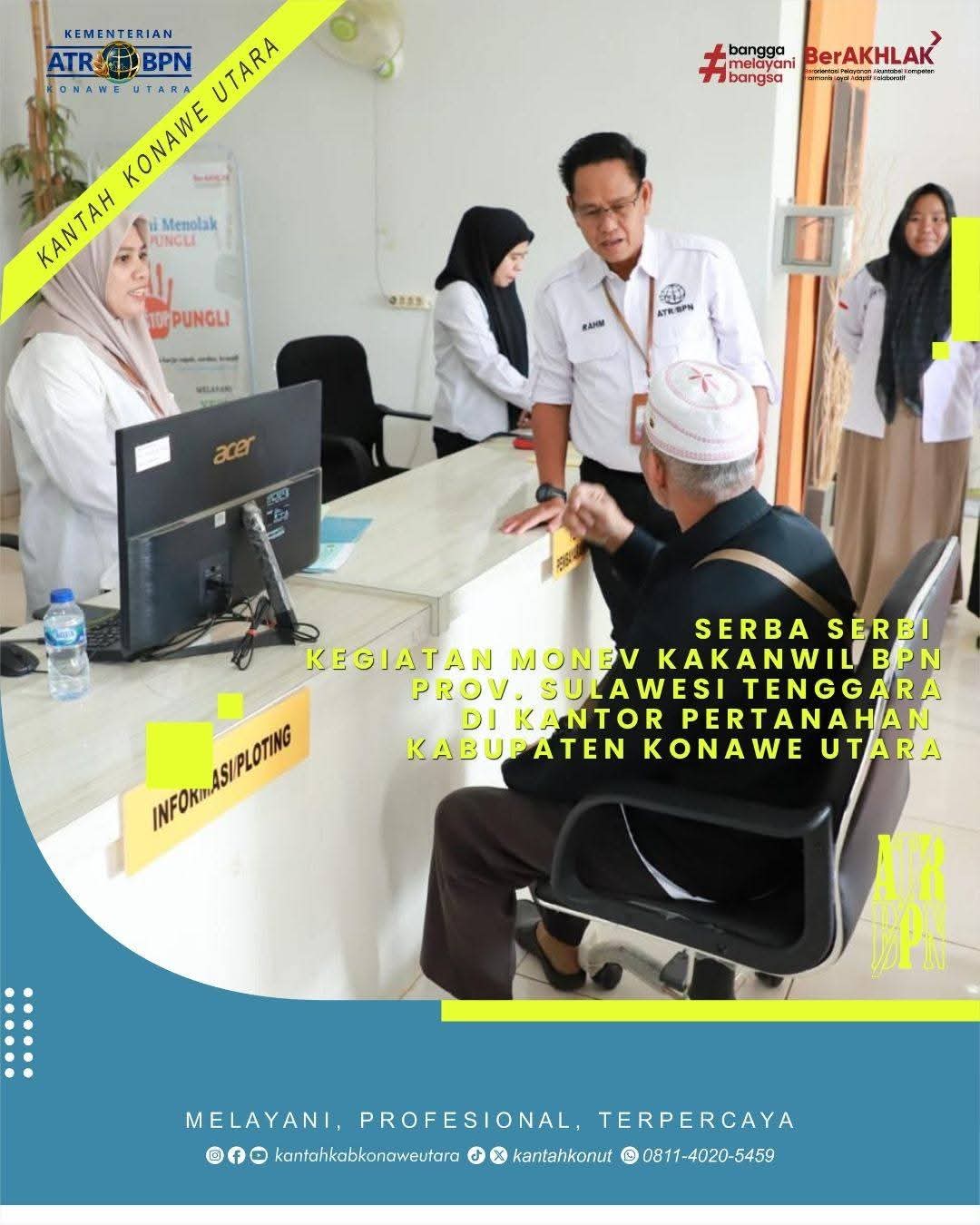 Konawe Utara – Kepala Kantor Wilayah Badan Pertanahan Nasional (BPN) Provinsi Sulawesi Tenggara, Rahmat, A.Ptnh., M.H., QRMO., OCPD, melakukan kegiatan monitoring dan evaluasi (monev)