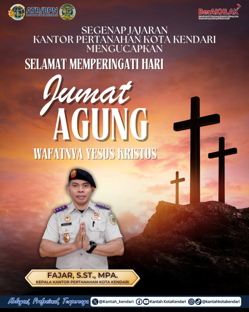 Segenap jajaran Kantor Pertanahan Kota Kendari mengucapkan Selamat Memperingati Hari Jumat Agung 2025 Wafatnya Yesus Kristus