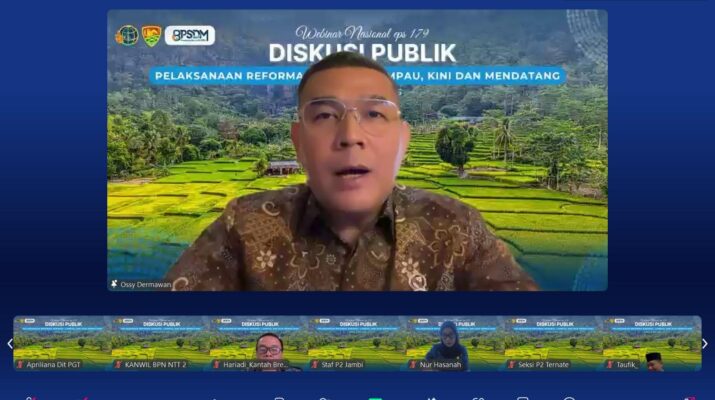 Jakarta – Wakil Menteri Agraria dan Tata Ruang/Wakil Kepala Badan Pertanahan Nasional (Wamen ATR/Waka BPN), Ossy Dermawan, membuka Webinar Nasional Diskusi Publik “Pelaksanaan Reforma