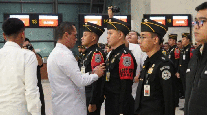 TANGERANG – Sekretaris Direktorat Jenderal Imigrasi, Sandi Andaryadi menyematkan body camera (bodycam) secara simbolis kepada 5 (lima) orang petugas Imigrasi dalam momentum Apel Bersama, Penguatan SDM dan Penandatanganan Pakta Integritas pada Kantor Imigrasi Kelas I Khusus TPI Soekarno Hatta, Jumat, 25 Juli 2025, pukul 01.00 WIB dini hari, bertempat di Area Imigrasi Terminal 3 Kedatangan, Bandara Internasional Soekarno-Hatta. Inisiatif ini merupakan langkah konkret Kantor Imigrasi Soekarno-Hatta dalam meningkatkan transparansi dan akuntabilitas kinerja petugas di lapangan.