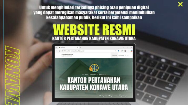 Konawe Utara, 11 Juni 2025 – Kantor Pertanahan Kabupaten Konawe Utara mengeluarkan imbauan resmi kepada masyarakat untuk tidak mengakses atau mempercayai situs palsu yang mengatasnamakan instansi ini.